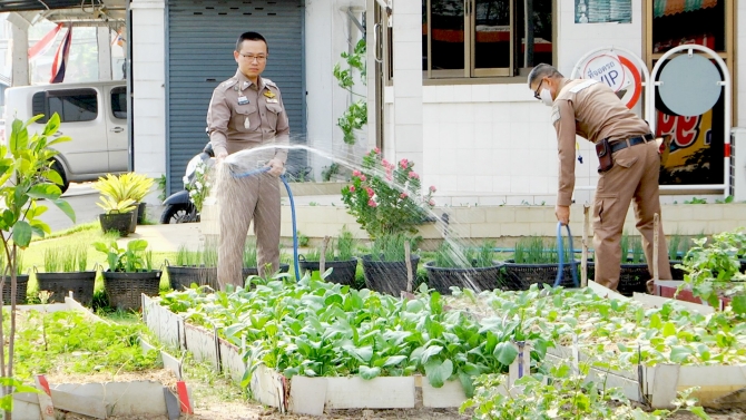 ตำรวจจราจรเมืองสุพรรณบุรีไอเดียร์เก๋ ใช้พื้นที่ว่างข้างป้อมปลูกผักสวนครัวปลอดสารพิษ ช่วยประหยัดค่าใช้จ่าย