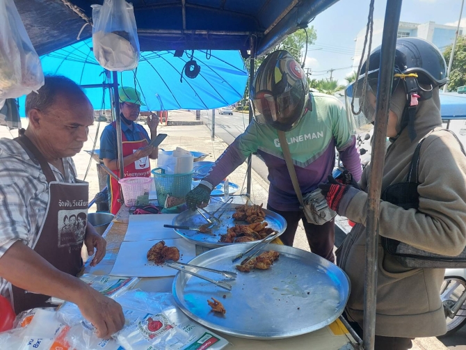 วันที่ 24 เมษายน 2569 ร้าน “โกล้านไก่ทอดขมิ้น” หน้าโรงเรียนเทศบาล 3 เขตเทศบาลเมืองกระบี่ ยังคงมีลูกค้าแวะเวียนมาซื้อไก่ทอดขมิ้นอย่างต่อเนื่อง แม้ทางร้านจะปรับราคาจากชิ้นละ 20 บาท เป็น 25 บาท ตั้งแต่ช่วงหลังเทศกาลสงกรานต์ที่ผ่านมา เนื่องจากแบกรับต้นทุนที่เพิ่มสูงขึ้นไม่ไหว