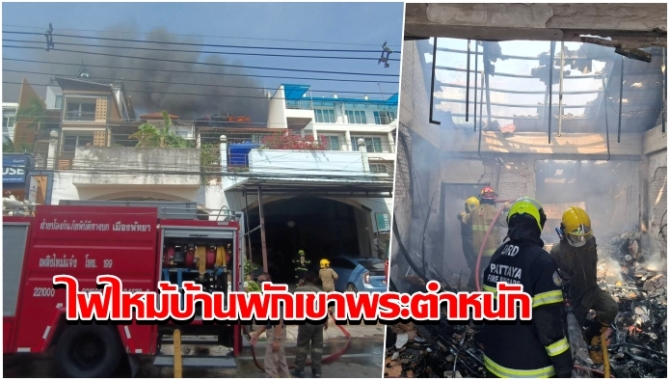 ระทึก! ไฟไหม้บ้านพักเขาพระตำหนัก ดับเพลิงพัทยาลุยดับก่อนวอด