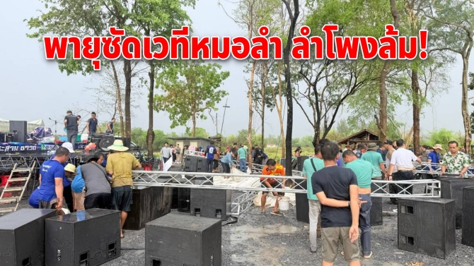 พายุฤดูร้อนถล่มเวทีหมอลำเลย ลำโพงยักษ์โค่น ผู้ชมวิ่งหนีวุ่น