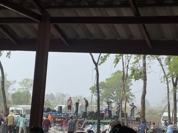 ชาวบ้านในพื้นที่เล่าว่า การแสดงหมอลำเริ่มตั้งแต่ช่วงสาย กระทั่งช่วงบ่ายมีทั้งลมและฝนพัดมาอย่างรุนแรง ทำให้ผู้ชมต่างพากันวิ่งหลบฝนและลม ก่อนที่ลำโพงบริเวณด้านหน้าเวทีและด้านข้างจะล้มลงมา