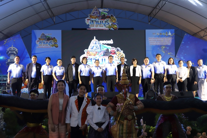 วันที่ 24 เมษายน 2569 ที่ศูนย์การค้าโรบินสันไลฟ์สไตล์ กาญจนบุรี นางสาววริษฐา สงวนเสริมศรี ผู้ว่าราชการจังหวัดกาญจนบุรี มอบหมายให้ นายสิทธิวีร์ วรรณพฤกษ์ รองผู้ว่าราชการจังหวัดกาญจนบุรี เป็นประธานเปิดงาน "สามบุรี SOFT POWER FAIR" ขับเคลื่อนท่องเที่ยว-เกษตร-อุตสาหกรรมสร้างสรรค์ กลุ่มจังหวัดภาคกลางตอนล่าง 1 ณ จังหวัดกาญจนบุรี โดยมี นายสุขสันต์ เพ็งดิษฐ์ ผู้จัดการสำนักงานพื้นที่พิเศษเพื่อการท่องเที่ยวอย่างยั่งยืนเมืองโบราณอู่ทอง (อพท.อู่ทอง) กล่าวรายงานวัตถุประสงค์ของการจัดงานฯ พร้อมด้วย หัวหน้าส่วนราชการในจังหวัดกาญจนบุรี สุพรรณบุรี จังหวัดราชบุรี หน่วยงานภาครัฐและเอกชน และสื่อมวลชน เข้าร่วมงานฯ