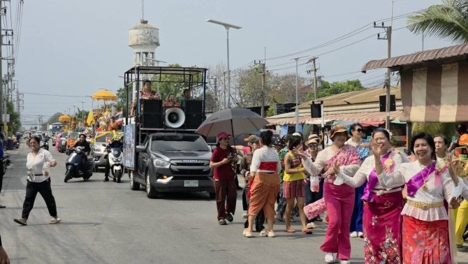 ภายในงานได้รับเกียรติจาก นายยุทธศักดิ์ ชูประเสริฐ นายกเทศมนตรีเมืองคลองหลวง พร้อมด้วยสมาชิกสภาองค์การบริหารส่วนจังหวัด (ส.อบจ.) ในพื้นที่ และคณะผู้บริหาร ร่วมขึ้นรถแห่นำขบวนอย่างเป็นกันเอง ซึ่งตลอด 2 ข้างทาง มีประชาชนจำนวนมากออกมาเล่นน้ำสงกรานต์กันอย่าง สนุกสนาน โดยกิจกรรมสำคัญประกอบด้วย ขบวนแห่พระพุทธรูปศักดิ์สิทธิ์ เพื่อให้ประชาชนได้สรงน้ำขอพรเพื่อความเป็นสิริมงคล ขบวนแห่พระจากวัดพระธาตุเติมบุญ รับน้ำมนต์เพื่อความเป็นสิริมงคล ขบวนรถบุพชาติ 14 คัน จาก 14 หมู่บ้าน ซึ่งตกแต่งอย่างสวยงามตระการตา สะท้อนเอกลักษณ์ของชุมชน พร้อมขบวนนางรำ และ กิจกรรมรำวงย้อนยุค กิจกรรมสันทนาการที่สร้างความสนุกสนานและดึงดูดผู้ร่วมงานทุกวัย