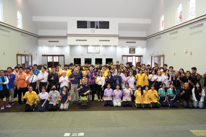ในการนี้มี รองศาสตราจารย์ ดร.ณรงค์ เพ็ชรประเสริฐ คณบดีคณะเศรษฐศาสตร์ มหาวิทยาลัยรังสิต พร้อมด้วย ดร.สุภรธรรม มงคลสวัสดิ์ เลขาธิการมูลนิธิพระมหาไถ่เพื่อการพัฒนาคนพิการ คณาจารย์ นักศึกษา เยาวชน และผู้เกี่ยวข้องเข้าร่วมงานอย่างพร้อมเพรียง