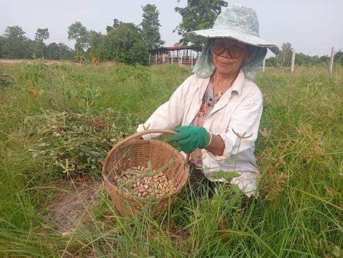 โดยผลผลิตฝักถั่วลิสงจะขายในหมู่บ้าน และมีแม่ค้ามารับซื้อถึงที่ เพื่อนำไปต้มสุกหรือคั่วขาย ในราคา กก.ละ 25 บาท อีกส่วนหนึ่งแบ่งไว้เป็นเมล็ดพันธุ์ ซึ่งก็พอมีกำไรหลายพันบาท เพราะทำง่ายๆ ทำตามแรงงานของคนที่เริ่มสูงอายุ