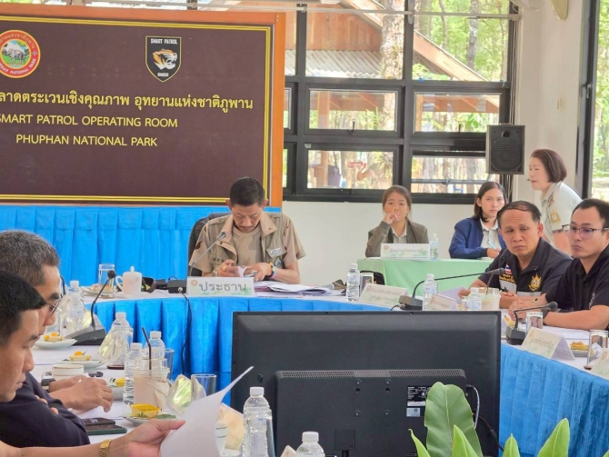 ซึ่งที่ประชุมได้เห็นชอบให้ดำเนินการได้เพราะเป็นประโยชน์ต่อชาวบ้าน และอีกวาระหนึ่งคือสถานการณ์ไฟป่าที่มีผู้เข้าไปหาของป่าเผาเพื่อล่าสัตว์ ทำให้กระทบต่อสัตว์ป่าได้จัด จนท.เดินเท้าและรถยนต์ลาดตระเวนกว่า 19,000 ก.ม.พบพื้นที่ถูกไฟไหม้ 593 จุด รวมพื้นที่กว่า 25,625 ไร่เศษ จนท.ตรวจพบ 456 ครั้ง โดยพื้นที่ อช.ภูพานครอบคลุม 2 จว.คือสกลนคร ประมาณ 390,000 ไร่ จ.กาฬสินธุ์ 59,000 ไร่เศษ รวม 540,000 ไร่เศษในช่วงนี้มีฝนตกลงมาบ้างแล้วปัญหาไฟป่าและฝุ่น pm2.5 ก็ลดลงบ้าง