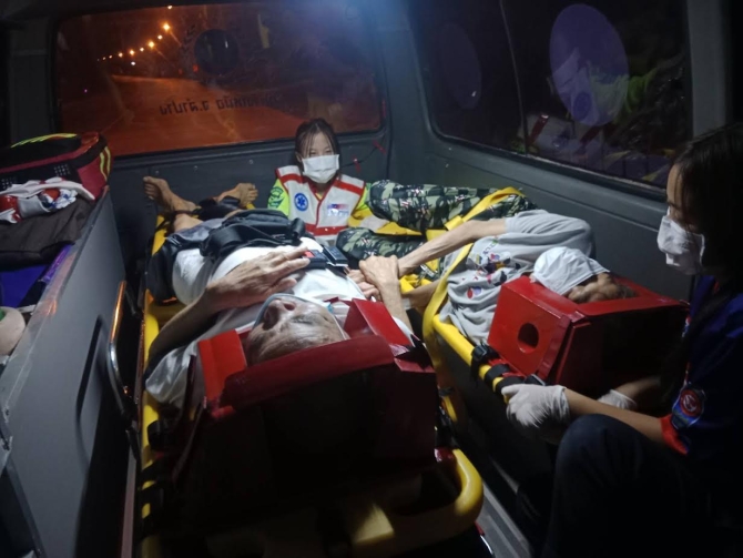 ล่าสุด ขณะนำตัวคุณตาส่งโรงพยาบาล คุณยายเกิดอาการใจสั่น คลื่นไส้ และอาเจียนกะทันหัน เจ้าหน้าที่จึงต้องพาทั้งสองไปรักษาพร้อมกัน ภาพที่เกิดขึ้นบนรถกู้ภัยทำให้หลายคนซาบซึ้ง เมื่อทั้งคู่นอนบนเปลสนามเคียงข้างกัน พร้อมจับมือกันไว้แน่นตลอดทาง