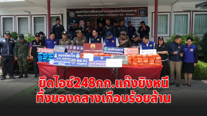 เมื่อเวลา 11.30 น. วันที่ 29 เม.ย. 2569 ที่กองกำกับการสืบสวนตำรวจภูธรจังหวัดหนองคาย นายไพฑูรย์ มหาชื่นใจ รองผู้ว่าราชการจังหวัดหนองคาย พร้อมเจ้าหน้าที่ตำรวจ ทหาร ศุลกากร ตรวจคนเข้าเมือง และหน่วยงานที่เกี่ยวข้อง ร่วมกันแถลงผลการตรวจยึดยาไอซ์ล็อตใหญ่ดังกล่าว