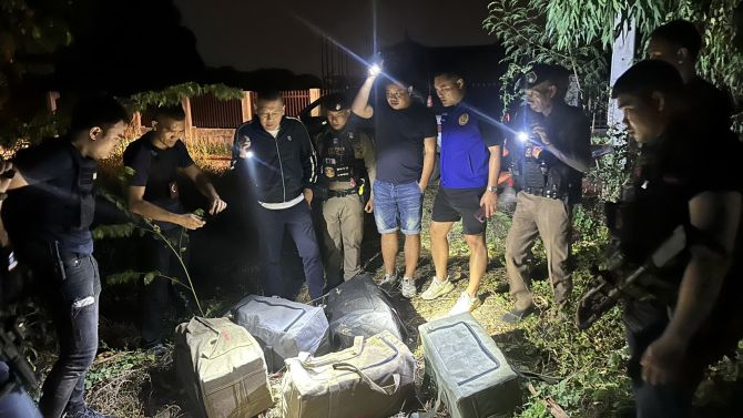 หนองคาย – เจ้าหน้าที่หลายหน่วยงานสนธิกำลังสกัดจับขบวนการค้ายาเสพติดข้ามชาติ หลังได้รับข้อมูลลักลอบขนยาไอซ์เข้าพื้นที่ช่วงกลางดึก คนร้ายไหวตัวทันใช้อาวุธปืนยิงเปิดทางหลบหนี ก่อนทิ้งของกลางจำนวนมากไว้ริมแม่น้ำโขง ตรวจยึดได้รวม 248 กิโลกรัม มูลค่าประมาณ 99 ล้านบาท