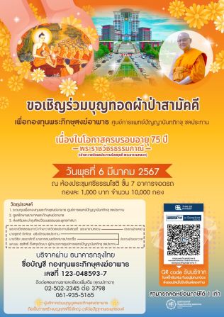 “ยิ่งให้ ยิ่งได้ … ขอเชิญร่วมบุญทอดผ้าป่าสามัคคี เพื่อกองทุนพระภิกษุสงฆ์อาพาธ”