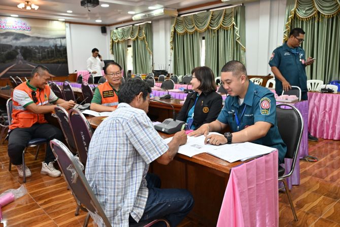 โดยมีอาสาสมัครเฉพาะกิจ กรมป้องกันและบรรเทาสาธารณภัย และคณะผู้แทนหน่วยงานรัฐ ร่วมสำรวจและประสานงาน พร้อมเข้าร่วมพิธีมอบเงิน ณ ที่ว่าการอำเภอกันทรลักษณ์ จังหวัดศรีสะเกษ