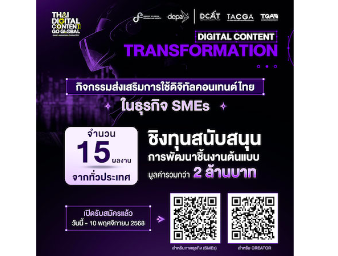 - depa เปิดโอกาสให้ SMEs ผนึกกำลัง ‘คาแรกเตอร์’ ฝีมือคนไทยสร้างมูลค่าเพิ่มสินค้า-บริการ ในกิจกรรม Digital Content Transformation 14 ต.ค. 2568