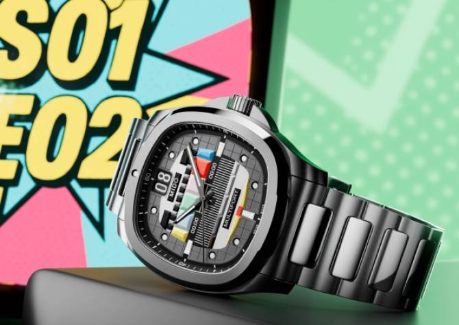 ในครั้งนี้ มิโด (MIDO) กลับมาจุดประกายและเติมสีสันให้วงการเรือนเวลาอีกครั้งกับผลงานล่าสุดในคอลเลกชั่นพิเศษ มัลติฟอร์ท ทีวี บิ๊ก เดท สเปเชียล อิดิชั่น เอส01อี02 (Multifort TV Big Date Special Edition S01E02) โดยหยิบยกแรงบันดาลใจจากยุคทองของจอโทรทัศน์มาถ่ายทอดผ่านหน้าปัดดีไซน์อันเป็นเอกลักษณ์ ที่จำลองลวดลายแถบคลื่นสัญญาณรบกวนหลากสีสุดคลาสสิกชวนให้รำลึกถึงวันวาน ให้กลายเป็นองค์ประกอบอันโดดเด่นบนหน้าปัดทรงทีวีสุดคลาสสิกที่สะท้อนกลิ่นอายเรโทร โดยคอลเลกชั่นนี้มาพร้อมตัวเรือนสเตนเลสสตีลเคลือบพีวีดีสีเทาขัดซาติน ชวนให้นึกถึงโลหะดิบ ซึ่งเป็นครั้งแรกที่วัสดุนี้ถูกนำมาใช้ในตระกูลของมัลติฟอร์ททีวีและเติมเต็มลุคโมโนโครมให้โดดเด่นยิ่งขึ้น ตัวสายถูกขัดเงาบริเวณข้อตรงกลาง และออกแบบให้เชื่อมต่อกับตัวเรือนได้อย่างเรียบเนียน นอกจากนี้ยังมาพร้อมสายนาฬิกา 3 สไตล์ ทั้งสายสแตนเลสสตีลที่ให้ลุคเรียบหรูดูสุขุม และสายนาฬิกายาง 2 เฉดสีที่มีดีไซน์ปั๊มลวดลายนูน ทั้งสีน้ำเงินสดเติมความเท่แบบโมเดิร์น และสีเหลืองสดที่ช่วยเพิ่มความสนุกสนานให้กับลุค มาพร้อมกรอบตัวเรือนขนาด 40 มิลลิเมตร บนหน้าปัดดีไซน์เฉพาะในธีมทีวีสุดวินเทจ ถ่ายทอดลวดลายคลื่นสัญญาณรบกวนหลากสีที่โดดเด่นตัดกับพื้นหลังสีเทา เสริมมิติให้โดดเด่นยิ่งขึ้นด้วยการขึ้นรูปนูนที่สะกดทุกสายตา โดยมีช่องแสดงวันที่ขนาดใหญ่ (Big Date) ที่ตำแหน่ง 12 นาฬิกา ใช้ตัวเลขสีขาวบนพื้นดำเพื่อให้อ่านค่าได้อย่างชัดเจน ด้านในหน้าปัดเสริมขอบแสดงนาที (Flange) เพื่อช่วยเพิ่มความชัดเจนในการอ่านเวลา