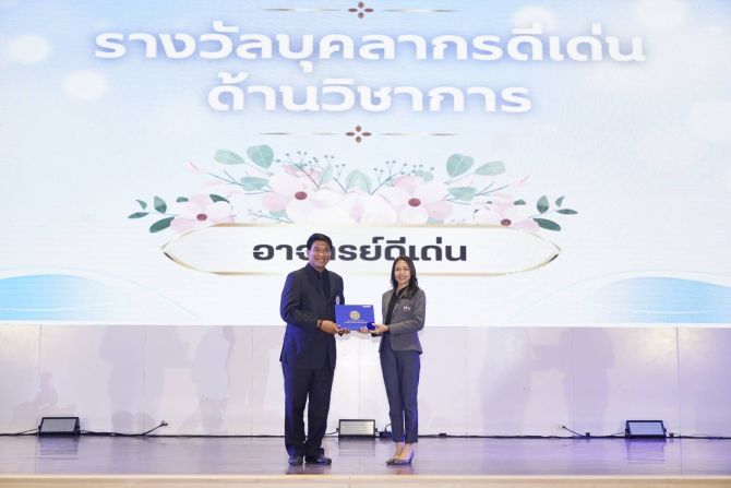 นายภาณุเดช ประทุมมา นักพัฒนาการศึกษา ศูนย์สนับสนุนและพัฒนาการเรียนการสอน กลุ่มงานมาตรฐานและบริการการศึกษา รับรางวัลบุคลากรดีเด่นกลุ่มงานด้านสนับสนุนวิชาการ ประเภทผู้ปฏิบัติการ – ระดับดีเด่น