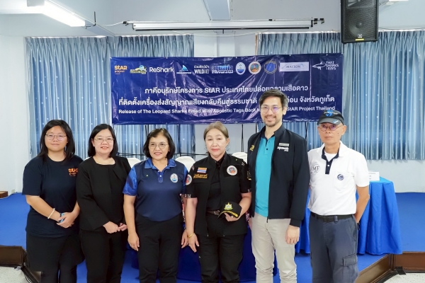 ดร.ปิ่นสักก์ สุรัสวดี อธิบดีกรมทรัพยากรทางทะเลและชายฝั่ง กล่าวว่า “ฉลามเสือดาวคือหนึ่งในสิ่งมีชีวิตที่มีบทบาทสำคัญต่อระบบนิเวศแนวปะการัง รักษาความสมดุลของสิ่งมีชีวิต และเป็นแรงดึงดูดนักท่องเที่ยวให้มาดำน้ำ สร้างรายได้และความรักในท้องทะเลไทย กรมทรัพยากรทางทะเลและชายฝั่งในฐานะหน่วยงานหลักด้านการศึกษา วิจัย และการอนุรักษ์ทรัพยากรทางทะเล ได้ดำเนินการร่วมกับภาคีอนุรักษ์โครงการ StAR ประเทศไทย ตั้งแต่การรับลูกฉลามเสือดาวจากอควาเรีย ภูเก็ต มาอนุบาลและฝึกฝนลูกฉลามเสือดาวให้กินอาหารเลียนแบบธรรมชาติในคอกทะเล ณ เกาะไม้ท่อน เพื่อให้ฉลามเสือดาวมีความพร้อมก่อนจะปล่อยคืนสู่ธรรมชาติ ทีมสัตว์แพทย์ของกรมยังได้ตรวจเช็คสุขภาพและผ่าตัดติดตั้งเครื่องส่งสัญญาณเสียงในฉลามเสือดาวร่วมกับทีมสัตวแพทย์จากโอเชียนปาร์ค ฮ่องกง นอกจากนี้ เราได้ทำงานร่วมกับกรมอุทยานแห่งชาติ สัตว์ป่า และพันธุ์พืช ในการติดตั้งและเก็บข้อมูลจากเครื่องรับสัญญาณเสียงใต้น้ำ เพื่อให้สามารถติดตามพฤติกรรม การเคลื่อนที่ และอัตราการรอดหลังปล่อยฉลามเสือดาวคืนสู่ธรรมชาติ การปล่อยฉลามเสือดาวคืนสู่ธรรมชาติในวันนี้ เป็นการแสดงพลังความร่วมมือของทุกภาคส่วน ทั้งภาครัฐ เอกชน ภาคประชาสังคม รวมถึงภาคประชาชน อย่างชุมชนนักดำน้ำ ที่จะคืนชีวิตให้กับท้องทะเลไทย และส่งต่อความสมดุลของระบบนิเวศให้กับคนรุ่นต่อไป”