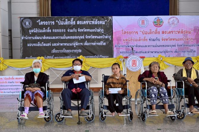 ป่อเต็กตึ๊งมอบวีลแชร์ 100 คัน หนุนผู้พิการหนองบัวลำภูถวายพระราชกุศล