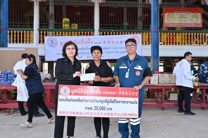 ป่อเต็กตึ๊งช่วยอยุธยา 9 แสนบาท ฟื้นฟูหลังน้ำลด-ถวายพระราชกุศล
