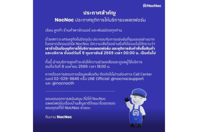 NocNoc ประกาศยุติการให้บริการแพลตฟอร์