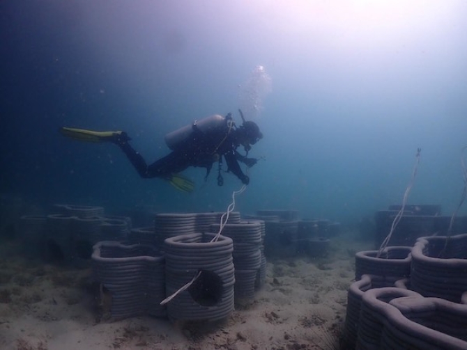 - ด้านปะการัง ออกแบบโครงสร้างเชิงนิเวศและพื้นที่อาศัยใต้ทะเล เพื่อกระตุ้นการตั้งถิ่นฐานของตัวอ่อนปะการัง เพิ่มพื้นที่แนวปะการังเทียม เพื่อเพิ่มอัตราการรอดของปะการังวัยอ่อนและเร่งการฟื้นตัวของแนวปะการังธรรมชาติ