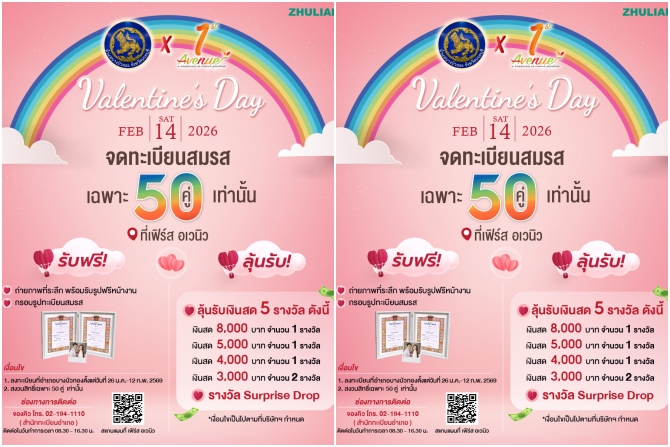 ซูเลียน ร่วมกับอำเภอบางบัวทอง เนรมิตวันวาเลนไทน์ชวนคู่รักเริ่มต้นชีวิตคู่ จดทะเบียนสมรส ณ 1st Avenu