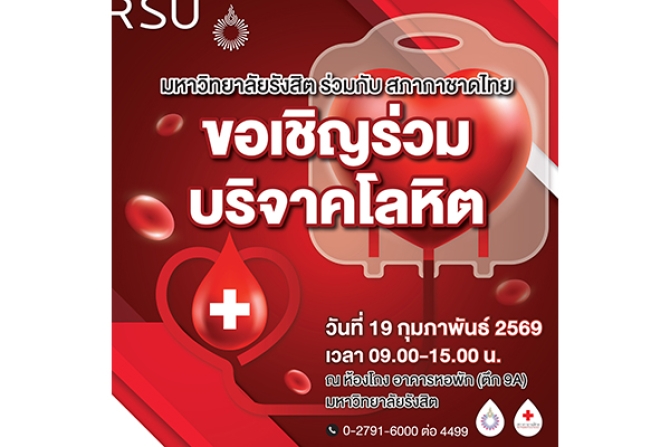 ม.รังสิต ร่วมกับ สภากาชาดไทย ขอเชิญร่วมบริจาคโลหิต 19 ก.พ. นี้