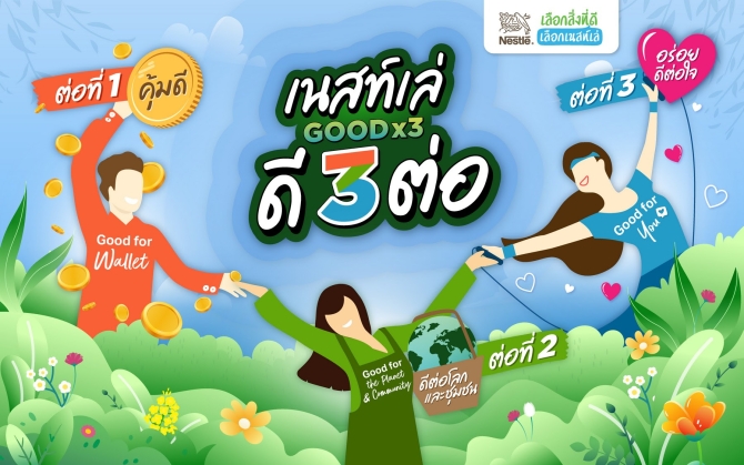 บริษัท เนสท์เล่ (ไทย) จำกัด ร่วมมือกับพันธมิตร ร้านสะดวกซื้อ และซูเปอร์มาร์เก็ตชั้นนำเปิดแคมเปญโปรโมชันยิ่งใหญ่รับปี 2569 “เนสท์เล่ดี 3 ต่อ” นำเสนอผลิตภัณฑ์เนสท์เล่ในราคาคุ้มดี อร่อยดีต่อใจ และดีต่อโลกและชุมชน เชิญชวนผู้บริโภคเลือกสิ่งที่ดี ทั้งการเลือกอาหารและเครื่องดื่มที่มีคุณภาพให้กับตนเอง และใส่ใจโลกด้วยการเลือกผลิตภัณฑ์ที่มาจากแหล่งผลิตที่ใส่ใจสิ่งแวดล้อม พร้อมมีส่วนร่วมในการจัดการบรรจุภัณฑ์หลังการบริโภคอย่างเหมาะสมเพื่อโลกที่ดีกว่า ตอกย้ำบทบาทของเนสท์เล่ในการดำเนินธุรกิจภายใต้ปรัชญา "Good food, Good life" หรืออาหารที่ดี เพื่อคุณภาพชีวิตที่ดี มุ่งมั่นในการคัดสรรวัตถุดิบคุณภาพที่ยั่งยืนจากต้นทางเพื่อนำมาผลิตเป็นผลิตภัณฑ์ที่อร่อยและมีคุณค่าโภชนาการ และสร้างคุณค่าร่วมอย่างยั่งยืนให้กับสังคมไทย พร้อมตอบโจทย์ผู้บริโภคยุคใหม่ที่ไม่ได้มองหาเพียงราคาที่คุ้มค่า แต่ยังเลือกผลิตภัณฑ์ที่สะท้อนถึงคุณค่าและเลือกชีวิตที่ดีที่สอดคล้องกับไลฟ์ไตล์ของตนเองได้