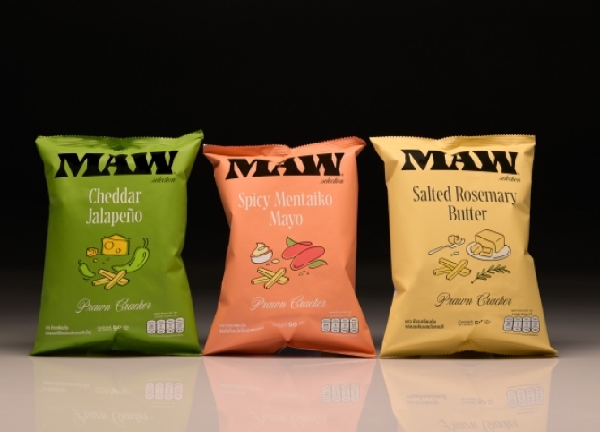 จากความมุ่งมั่นในการสร้างมาตรฐานใหม่ให้กับตลาดขนมในไทย MAW (มาว) เลือกเปิดตัวโปรดักต์แรกด้วยข้าวเกรียบกุ้งพรีเมียม (Premium Prawn Cracker) ซึ่งพัฒนาขึ้นจากอินไซต์ของผู้บริโภครุ่นใหม่ ตั้งแต่การคัดเลือกวัตถุดิบเกรดสูงเพื่อลดกลิ่นคาวกุ้งแบบเดิมๆ การออกแบบรูปทรงให้ดูทันสมัยคล้าย French Fries Cut ไปจนถึงการคิดค้นรสชาติที่ได้แรงบันดาลใจจาก Global Taste และนำมาปรับให้เข้ากับรสนิยมของคนไทย
