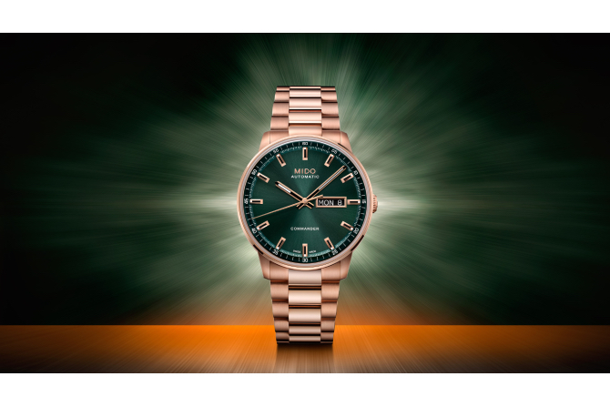 “มิโด” เผยโฉมเรือนเวลาสุดคลาสสิก “คอมมานเดอร์ ดาโทเดย์” (Commander Datoday) โดดเด่นด้วยหน้าปัดสีเขียวเข้มบนตัวเรือนสีโรสโกลด์ ถ่ายทอดการตีความครั้งใหม่ จากคอลเลกชั่นไอคอนิกที่ผสานความสง่างามและฟังก์ชั่นอันร่วมสมัยไว้ได้อย่างลงตัว