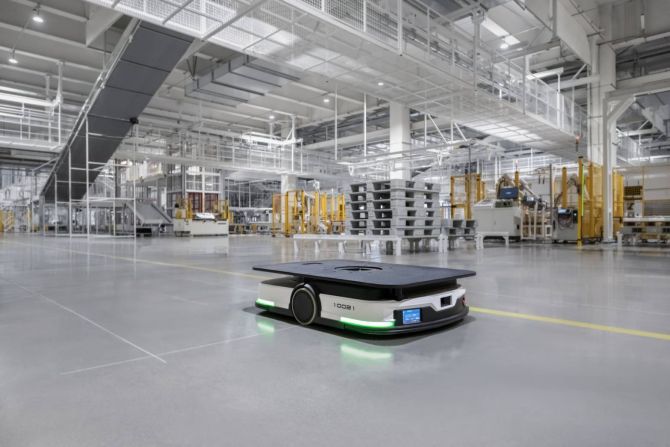 เมื่อเข้าสู่สายการผลิตจริง ภาพของหุ่นยนต์จำนวนมากที่ทำงานประสานกันอย่างไร้ที่ติ คือสิ่งที่สะท้อนความเป็นโรงงานแห่งอนาคตได้อย่างชัดเจน เครือข่ายหุ่นยนต์แบบ Robot Dense Matrix ถูกใช้ในกระบวนต่างๆ ตั้งแต่การปั๊มโลหะ การประกอบ ไปจนถึงการขนส่งวัสดุ ขณะที่หุ่นยนต์เคลื่อนที่อัตโนมัติ (AMR) วิ่งส่งชิ้นส่วนระหว่างจุดต่าง ๆ อย่างต่อเนื่องโดยไม่ต้องพึ่งพาแรงงานมนุษย์