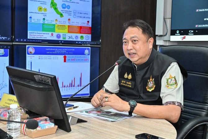 นายสุชาติ ชมกลิ่น รัฐมนตรีว่าการกระทรวงทรัพยากรธรรมชาติและสิ่งแวดล้อม (รมว.ทส.) เปิดเผยว่า สถานการณ์ไฟป่าและหมอกควันยังคงส่งผลกระทบต่อสุขภาพและสิ่งแวดล้อมอย่างต่อเนื่อง โดยพบ 5 กลุ่มป่าที่มีจุดความร้อนสะสมสูงสุด ได้แก่ กลุ่มป่าเขื่อนภูมิพล กลุ่มป่าแม่ยม กลุ่มป่าศรีลานนา–แม่ลาว กลุ่มป่าถ้ำผาไท และกลุ่มป่าเหนือเขื่อนสิริกิติ์ ครอบคลุม 9 จังหวัดภาคเหนือ ประกอบด้วย ลำปาง เชียงใหม่ แพร่ ตาก แม่ฮ่องสอน น่าน ลำพูน เชียงราย พะเยา ทั้งนี้ กระทรวงฯ จึงยกระดับการทำงานเชิงรุกเต็มรูปแบบ เร่งบูรณาการทุกภาคส่วน ควบคู่การใช้เทคโนโลยีและการมีส่วนร่วมของประชาชน เพื่อลดผลกระทบและเร่งคืนอากาศบริสุทธิ์ให้ประชาชนโดยเร็วที่สุด โดยได้มอบหมายให้ ดร.รวีวรรณ ภูริเดช ปลัดกระทรวงฯ ออกคำสั่งจัดตั้งศูนย์ปฏิบัติการแก้ไขปัญหาไฟป่าและหมอกควัน (ส่วนหน้า ภาคเหนือ) พ.ศ. 2569 ในพื้นที่รับผิดชอบของกระทรวงฯ ทำหน้าที่เป็นศูนย์กลาง “สั่งการ–ประสาน–ปฏิบัติ” เชื่อมโยงทุกหน่วยงานให้ทำงานเป็นหนึ่งเดียว เพิ่มความรวดเร็วและแม่นยำในการควบคุมสถานการณ์ โดยศูนย์ฯ ดังกล่าวจะสนธิกำลังเจ้าหน้าที่ทุกฝ่าย เดินหน้าปฏิบัติการเชิงรุก พร้อมติดตามและรายงานสถานการณ์แบบเรียลไทม์ เพื่อรับมือได้ทันต่อสถานการณ์ โดยแต่งตั้ง พลตำรวจตรี นันทชาติ ศุภมงคล ที่ปรึกษารัฐมนตรีว่าการกระทรวงทรัพยากรธรรมชาติและสิ่งแวดล้อม เป็นที่ปรึกษาศูนย์ และแต่งตั้ง นายนิพนธ์ จำนงสิริศักดิ์ รองปลัดกระทรวงทรัพยากรธรรมชาติและสิ่งแวดล้อม เป็นผู้อำนวยการศูนย์