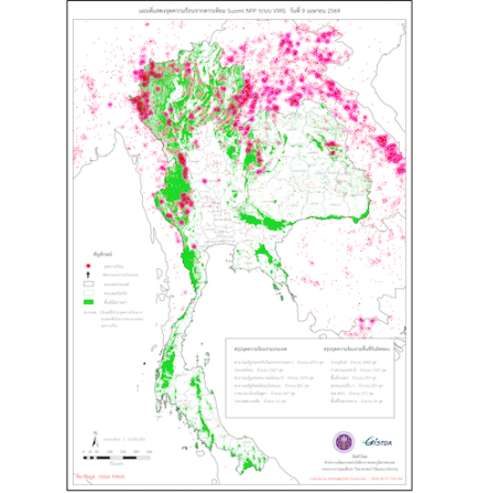 ข้อมูลจากดาวเทียมซูโอมิ เอ็นพีพี (Suomi NPP) ระบบ VIIRS ระบุว่าจุดความร้อนในไทยเกิดขึ้นพื้นที่ป่าอนุรักษ์ 3,080 จุด พื้นที่ป่าสงวนแห่งชาติ 1,541 จุด พื้นที่เกษตร 293 จุด พื้นที่ชุมชนและอื่นๆ 243 จุด พื้นที่เขต สปก. 151 จุด และพื้นที่ริมทางหลวง 19 จุด