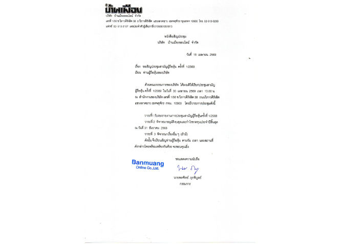 บริษัท บ้านเมืองออนไลน์ จำกัด ขอเชิญประชุมสามัญผู้ถือหุ้น ครั้งที่ 1/2569