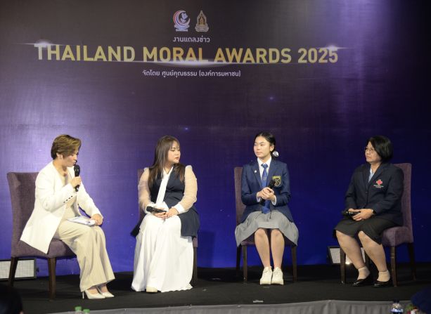 ในงานแถลงข่าวรางวัล THAILAND MORAL AWARDS 2025 ยังมีกิจกรรมเสวนา จากผู้ได้รับรางวัลในปี 2024 ผู้แทนรางวัลประเภทบุคคล คุณวิชญาดา รักกสิกร ผู้ร่วมก่อตั้งกลุ่ม Heart 2 Heart Charity ที่ชวนเยาวชนทำกิจกรรมสาธารณประโยชน์ ผู้แทนรางวัลประเภทชุมชนและองค์กร จากฝ่ายการพยาบาล โรงพยาบาลจุฬาลงกรณ์ สภากาชาดไทย คุณเอื้องพร เผ่าเจริญ ผู้ช่วยหัวหน้าพยาบาลด้านทรัพยากรบุคคล และผู้แทนรางวัลประเภทสื่อ โดย คุณพรวิรุณ แก้วทอง Director of learning business บริษัท T&B Media Global Thailand จาก แอนิเมชันซีรีส์ สติมา “เณรน้อยอัจฉริยะ”