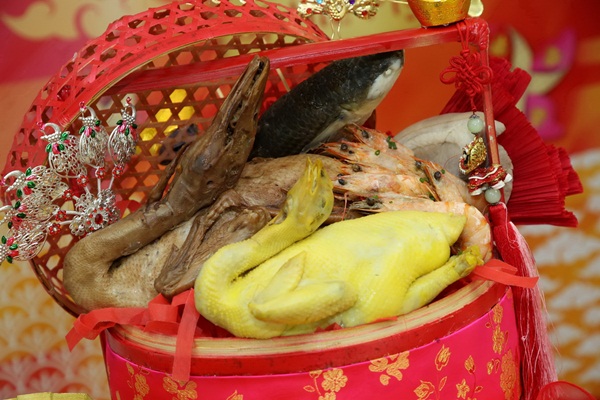 ด้าน อาจารย์ช้าง-ทศพร ศรีตุลา กูรูชื่อดัง ให้คำแนะนำเกี่ยวกับประเพณีการไหว้เพื่อเสริมความเฮงว่า “โดยประเพณีการไหว้ของคนจีน จะเริ่มตั้งแต่ช่วงเช้าตรู่ของวันที่ 4 ก.พ. โดยจะเริ่มไหว้เทพเจ้า รวมถึงสิ่งศักดิ์สิทธิ์ที่ปกปักรักษาบ้าน ช่วงสายจะไหว้บรรพบุรุษ ของไหว้บรรพบุรุษประกอบด้วย ชุดโหงวแซ คือเนื้อสัตว์ 5 ชนิด ได้แก่ หมู ซึ่งหมายความอุดมสมบูรณ์, เป็ด สื่อถึงความสามารถที่หลากหลาย และความสำเร็จ, ไก่ หมายถึงความก้าวหน้าในหน้าที่การงาน, ตับ ซึ่งในภาษาจีนพ้องเสียงกับคำว่า กัว ที่แปลว่า ขุนนาง จึงหมายถึง อำนาจวาสนา, ปลา หมายถึง เหลือกินเหลือใช้ หรือสามารถปรับไปไหว้เป็นกุ้ง หรือในปีนี้เป็นปีหมูทอง สามารถเสริมด้วยด้วยการใช้ หมูกรอบ เพราะสีเหลืองทองคล้ายทองคำ เป็นสัญลักษณ์ของสิริมงคล ความร่ำรวย ส่วนชุดซาแซ คือเนื้อสัตว์ 3 ชนิด ได้แก่ หมู เป็ด ไก่ และนอกจากเนื้อสัตว์ที่เป็นเครื่องไหว้ยังมีอาหารและผลไม้ความหมายมงคล เช่น ขนมเข่ง หมายถึงความมั่งมี โดยปัจจุบันมีการเสริมสิริมงคลตามความเชื่อ โดย ทำขนมเข่งรูปหมูสีทอง ซึ่งสื่อถึงความอุดมสมบูรณ์และร่ำรวย รูปปลากิมหลีฮื้อ เพราะชาวจีนเชื่อว่า ปลาหลีฮื้อนำพาโชคลาภ ทำให้ค้าขายดี หรือรูปตำลึงเงิน ก็สื่อถึงโชคลาภทางด้านเงิน, ขนมเทียน หมายถึงความเจริญรุ่งเรือง, ขนมถ้วยฟู หมายถึงความมีชื่อเสียง, ซิ่วท้อ หรือซาลาเปาลูกท้อ สื่อถึงสุขภาพแข็งแรง อายุยืนยาว, และชุดไหว้ผลไม้มงคล นิยมใช้ผลไม้ 5 ชนิด เพราะคนจีนถือว่าเป็นจำนวนมงคล โดยนิยมไหว้ผลไม้ที่มีสีสันสดใส เป็นสีมงคลช่วยเสริมพลัง อย่าง สีแดง สีส้ม สีเขียว ฯลฯ