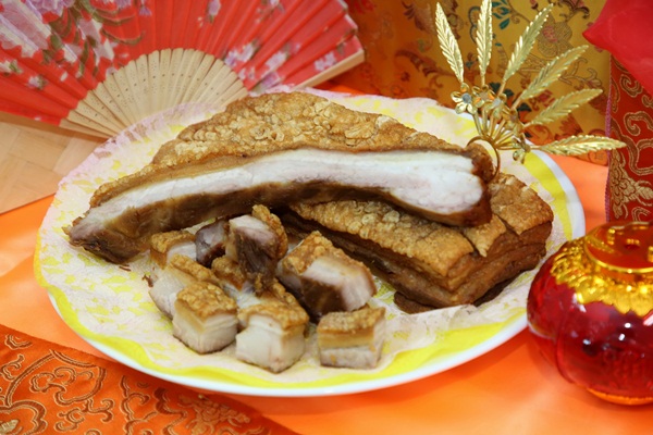 โดยนิยมไหว้ผลไม้ ได้แก่ ส้ม ซึ่งคำจีนเรียก “ไต้กิก” แปลว่าโชคดี,แอปเปิ้ลสีแดง หมายถึง ความสันติสุข, องุ่นแดง สื่อถึงความเจริญงอกงาม, กล้วยหอมหวีใหญ่ หมายถึง กวักโชคลาภเข้ามา และมีลูกหลานเต็มบ้านเต็มเมือง, ส้มโอทับทิมสยาม สื่อถึงความสมบูรณ์, เมล่อน สื่อถึงการเจริญเติบโต และ สาลี่ ประสบแต่เรื่องดีๆ มีเงินทองไหลมาเทมาเหมือนสีทองของสาลี่ ส่วนช่วงกลางคืนจะไหว้ เทพเจ้าไฉ่ซิงเอี๊ย หรือเทพเจ้าแห่งโชคลาภที่ในหนึ่งปีจะมาเพียงครั้งเดียว ในช่วงเวลา 23.00 น. ของคืนวันที่ 4 ก.พ. ไปจนถึงของเช้าวันที่5 ก.พ. โดยให้หันหน้าไปทางทิศใต้ ซึ่งเป็นทิศที่เทพเจ้าจะเสด็จมาในปีกุนนี้ นิยมไหว้ด้วยผลไม้มงคลเช่นกัน โดยจะไม่ไหว้ด้วยของคาว และเคล็บลับตอนไหว้เทพเจ้าไฉ่ซิงเอี๊ย ให้นำกระเป๋าเงิน สมุดบัญชี บัตรเอทีเอ็ม ของที่เกี่ยวกับธุรกรรมการเงินส่วนตัว ไปวางที่โต๊ะไหว้ เพื่อเสริมดวงเหมือนเปิดช่องทางให้โชคลาภการเงิน”