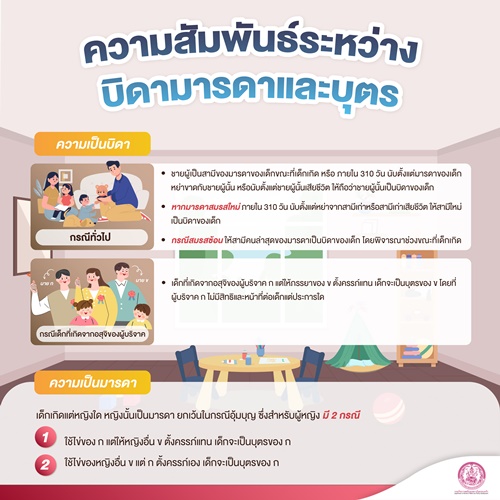 กฏหมายน่ารู้ด้านครอบครัว โดยกรมกิจการสตรีและสถาบันครอบครัว เพราะ "ครอบครัว" เป็นสถาบันหลักของสังคม กฏหมายที่เกี่ยวกับครอบครัวจึงเป็นกฏหมายที่บัญญัติเกี่ยวกับความสัมพันธ์ภายในครอบครัวระหว่างบิดามารดาและบุตร