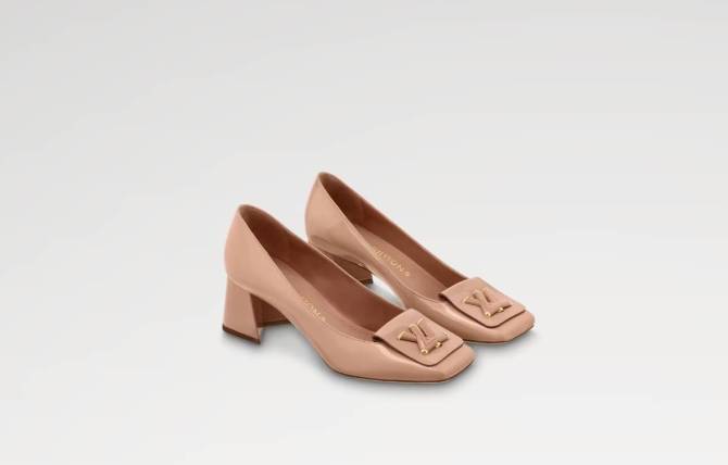วันทางการธรรมดาที่ไม่ใช่งานเลี้ยงกลางคืน รองเท้าส้นสูงแฟชั่นสำหรับผู้หญิง แบรนด์หลุยส์คู่นี้ถือเป็นสิ่งที่ตอบโจทย์ได้เป็นอย่างดี กับรุ่นที่มีชื่อว่า Shake รุ่นนี้โดดเด่นที่การประดับแอคเซสเซอรี่อักษรย่อ LV ขนาดใหญ่เอาไว้ที่ด้านหน้าของรองเท้า ตัวรองเท้าตัดเย็บจากหนังลูกวัวเคลือบเงา มาในสีชมพู Nude ตัวรองเท้าเป็นทรงหัวตัด ห่อหุ้มเท้าเอาไว้หมดทุกด้าน ค่อนข้างสุภาพเหมาะกับงานทางการหลาย ๆ งาน ออกแบบส้นให้เป็นแบบตันรูปตัว V รุ่นนี้เป็นส้นสูง 5.5 เซนติเมตร จัดว่าไม่สูงจนเกินไป อยู่ในระดับกำลังดี เน้นใส่สบายไม่เมื่อยเท้า