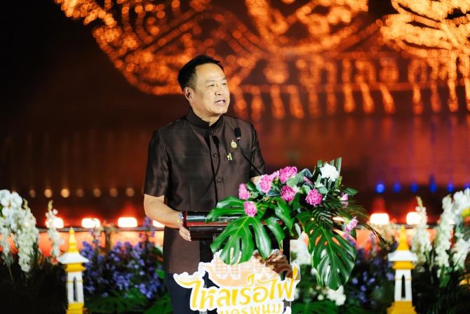 นายกรัฐมนตรี เป็นประธานในพิธี เป็นประธานในพิธีเปิดงานมหกรรมไหลเรือไฟโลกจังหวัดนครพนม ประจำปี 2568 ณ เวทีการแสดง แสง สี เสียง บริเวณลานหน้าวัดโพธิ์ศรี ตำบลในเมือง อำเภอ เมืองนครพนม จังหวัดนครพนม พร้อมร่วมรับชมการแสดงแสง สี เสียง สื่อผสม “ประเพณีไหลเรือไฟนครพนม ๑ เดียวในโลก “แสงไฟแห่งศรัทธา”, การไหลเรือไฟเฉลิมพระเกียรติ 70 พรรษา สมเด็จพระกนิษฐาธิราชเจ้ากรมสมเด็จพระเทพพระรัตนราชสุดาฯ สยามบรมราชกุมารี “เทิดพระเกียรติ พระปรีชาเจ้าฟ้าวิศิษฏศิลปิน” ขณะที่ รักษาการณ์ผู้ว่าราชการจังหวัดนครพนม และผู้บริหารกระทรวงวัฒนธรรม เข้าร่วมโครงการยกระดับเทศกาลเรือไฟไทย สู่เรือไฟโลก ในงานมหกรรมไหลเรือไฟโลกและงานกาชาดจังหวัดนครพนม ประจำปี 2568