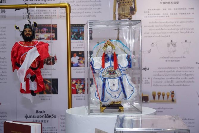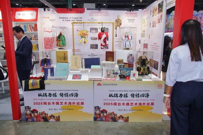 อย่างไรก็ดี นอกจากโซนหนังสือแล้ว ยังมีโซนมรดกทางวัฒนธรรมที่จับต้องไม่ได้ ถือว่าเป็น (gimmick) ลูกเล่นใหม่ๆ ที่ได้นำมาจัดแสดงเพิ่มเติมในปีนี้ ส่งผลให้ผู้ชมงานต่างให้ความสนใจเข้ามาเยี่ยมเยียนสอบถามพูดคุยจำนวนมาก ซึ่งทางนิทรรศการสื่อสิ่งพิมพ์จีนสัญจรฯ ได้จัดขึ้นมา ผ่านความร่วมมือกับพิพิธภัณฑ์ความสัมพันธ์ฝูเจี้ยน–ไต้หวันแห่งประเทศจีน (China Museum for Fujian–Taiwan Kinship) ในการสร้างสรรค์พื้นที่พิเศษนี้ขึ้นมา เพื่อใช้จัดแสดง “ศิลปะแห่งหุ่นกระบอกฝูเจี้ยน-ไต้หวัน” ด้วยการนำเสนอเกี่ยวประวัติศาสตร์วัฒนธรรมผ่านรูปภาพ ข้อความและหุ่นกระบอกจริง จึงขอเชิญชวนผู้ชมชาวไทยมาร่วมสัมผัสมนต์เสน่ห์ของหนังสือ ควบคู่กับมรดกทางวัฒนธรรมที่จับต้องไม่ได้ ในพื้นที่โซนนี้ด้วยกัน