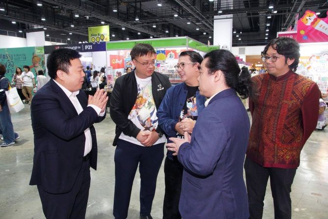 ส่วนช่วงบ่ายของวันเดียวกัน นายณัฐกร วุฒิชัยพรกุล นายกสมาคมผู้จัดพิมพ์และจำหน่ายหนังสือแห่งประเทศไทย ได้นำตัวแทนวิชาชีพหนังสือของประเทศไทยเข้าเยี่ยมชมบูธของนิทรรศการสื่อสิ่งพิมพ์จีนสัญจรเอเชียตะวันออกเฉียงใต้ อย่างอบอุ่น โดยทั้ง 2 ฝ่ายต่างหารือเรื่องราวต่างๆ ในระดับเชิงลึกเกี่ยวกับความร่วมมือด้านงานนิทรรศการหนังสือระดับนานาชาติ, การซื้อขายลิขสิทธิ์ และการพัฒนาอุตสาหกรรมสิ่งพิมพ์ในยุคดิจิทัล