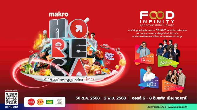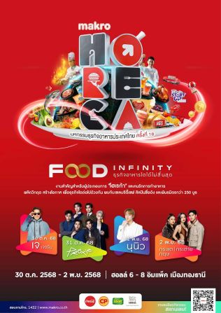 แม็คโคร ชวนร่วมงาน “HoReCa 2025” เวทีธุรกิจอาหารระดับประเทศ ยิ่งใหญ่ที่สุดแห่งปี 30 ต.ค.-2 พ.ย. 68 ที่อิมแพค เมืองทองธานี