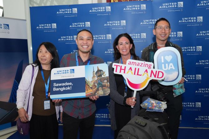 การท่องเที่ยวแห่งประเทศไทย (ททท.) ร่วมต้อนรับเที่ยวบินปฐมฤกษ์ UA820 เส้นทางลอสแอนเจลิส–กรุงเทพฯ (แวะพักที่ฮ่องกง) ของสายการบิน United Airlines ณ ท่าอากาศยานสุวรรณภูมิ นับเป็นการกลับมาทำการบินของสาย