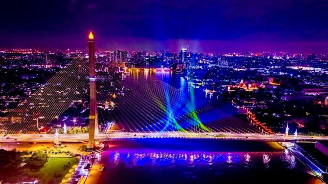 พร้อมการแสดง Light & Sound และสื่อประสมสุดพิเศษ และบริเวณ สะพานปฐมบรมราชานุสรณ์ (สะพานพระพุทธยอดฟ้า) จัดแสดงภายใต้แนวคิด “Threads of Glory สายใยแห่งความรุ่งเรือง” ด้วยเทคโนโลยีแสง สี เสียงสุดล้ำสมัย Light & Sound ผสานเทคโนโลยีพิเศษ พร้อมการแสดงโดรนสุดอลังการกว่า 500–1,000 ลำ ภายใต้แนวคิด “แสงแห่งสยาม แม่ของแผ่นดิน” ที่จะส่องสว่างเหนือน่านน้ำเจ้าพระยาในค่ำคืนพิเศษ โดยการแสดงโดรน 500 ลำ จัดแสดง วันที่ 14, 21, พฤศจิกายน และ วันที่ 5, 12, 19 ธันวาคม 2568 วันละ 1 รอบ (เวลา 20.45 น.) และการแสดงโดรน 1,000 ลำ จัดแสดง วันที่ 9, 15, 22, 28, 29 พฤศจิกายน และ วันที่ 6, 13, 20 ธันวาคม 2568 วันละ 1 รอบ (เวลา 20.45 น.) ขณะเดียวกัน สะพานพระปกเกล้า จัดแสดงแนวคิด “Luminary Golden Threads สายใยทองแห่งสยาม” สื่อถึงความรุ่งเรืองของชาติ ส่วนบริเวณ ตึกร้าง (ซอยล้ง 1919) ถ่ายทอดมนต์เสน่ห์แห่งประวัติศาสตร์ผ่านแนวคิด “Siam Ghostly Heritage สยามวิญญาณรัตติกาล” ด้วยเทคนิค Light on Balloon ที่เล่นแสงและเงาอย่างมีมิติ นอกจากนี้ ยังมีการจัดแสดงที่ วัดแม่พระลูกประคำ (กาลหว่าร์) ภายใต้แนวคิด “Beacon of Ambition แสงไฟแห่งความรุ่งเรือง” และที่ RIVER CITY BANGKOK กับแนวคิด “Thailand Land of Smiles เมืองไทย เมืองแห่งรอยยิ้ม” ถ่ายทอดรอยยิ้มแห่งสยามที่พร้อมต้อนรับนักท่องเที่ยวจากทั่วโลก ขณะเดียวกัน ไอคอนสยาม (ICONSIAM) ได้จัดแสดงต้นคริสต์มาสสุดยิ่งใหญ่ภายใต้แนวคิด “The Thai-conic Lighting Symphony” พร้อมการแสดง ICONIC Multimedia Water Feature ที่จัดขึ้นวันละ 3 รอบ เติมเต็มบรรยากาศแห่งความสุขริมสายน้ำเจ้าพระยา และปิดท้ายที่ ปั้นจั่น / เครนก่อสร้างทางน้ำ บริษัท อู่กรุงเทพ จำกัด กับการจัดแสดงภายใต้แนวคิด “Crystal of Life ดวงแสงแห่งการท่องเที่ยวอย่างยั่งยืน” Art Installation สื่อถึงพลังงานแห่งความหวังและความงดงามของการท่องเที่ยวสีเขียว ที่จะเปล่งประกายไปพร้อมกับสายน้ำแห่งชีวิต
