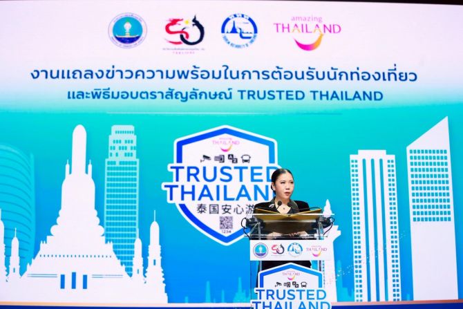 นายอรรถกร ศิริลัทธยากร รัฐมนตรีว่าการกระทรวงการท่องเที่ยวและกีฬา กล่าวว่า ตลอด 10 เดือนที่ผ่านมาของปี 2568 ประเทศไทยต้อนรับนักท่องเที่ยวต่างชาติรวมประมาณ 26.7 ล้านคน สำหรับนักท่องเที่ยวชาวจีนมีจำนวน 3.7 ล้านคน คิดเป็นสัดส่วนประมาณ 15% ดังนั้น รัฐบาลจึงได้ดำเนินมาตรการสร้างความมั่นใจในการเดินทางให้นักท่องเที่ยวอย่างต่อเนื่องในทุกมิติ ไม่ว่าจะเป็นการยกระดับมาตรฐานสถานที่ท่องเที่ยว การประสานความร่วมมือกับหน่วยงานด้านความมั่นคง การสื่อสารข้อมูลที่ถูกต้อง รวมถึงการอำนวยความสะดวกแก่นักท่องเที่ยว ด้วยโครงการ “Trusted Thailand” ที่ดำเนินการโดย ททท. เพื่อเสริมความเชื่อมั่นให้กับนักท่องเที่ยวในการเลือกสถานประกอบการโรงแรมที่พัก ร้านอาหาร และแหล่งท่องเที่ยว ผ่านตราสัญลักษณ์ Trusted Thailand ที่เปรียบเสมือนสัญลักษณ์ที่สร้างความมั่นใจในด้านความปลอดภัยของนักท่องเที่ยวให้กลับมาเดินทางท่องเที่ยวประเทศไทยอีกครั้ง โดยเฉพาะในกลุ่มนักท่องเที่ยวจีนให้เกิดการเดินทางอย่างต่อเนื่อง