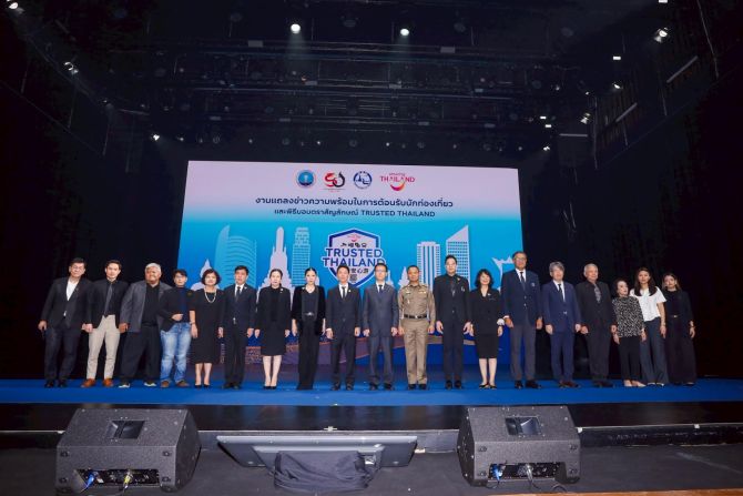 วันนี้ (13 พฤศจิกายน 2568) นายอรรถกร ศิริลัทธยากร รัฐมนตรีว่าการกระทรวงการท่องเที่ยวและกีฬา นายหยาง เสี่ยวหลง ที่ปรึกษาแผนกวัฒนธรรม สถานเอกอัครราชทูตสาธารณรัฐประชาชนจีนประจำประเทศไทย และนางสาวฐาปนีย์ เกียรติไพบูลย์ ผู้ว่าการการท่องเที่ยวแห่งประเทศไทย (ททท.) ผนึกกำลังหน่วยงานพันธมิตร อาทิ กรมการท่องเที่ยว กรมอุทยานแห่งชาติ สัตว์ป่า และพันธุ์พืช กรมอนามัย ตำรวจท่องเที่ยว สภาอุตสาหกรรมท่องเที่ยวประเทศไทย สมาคมโรงแรมไทย หอการค้าไทย สมาคมผู้ค้าปลีกไทย สมาคมผู้ประกอบวิสาหกิจในย่านราชประสงค์ สมาคมสวนสนุกแลผะสวนพักผ่อนหย่อนใจ บริษัท Trip.com (ประเทศไทย) บริษัท อโก้ดา เซอร์วิสเซส จำกัด บริษัท แกร็บแท๊กซี่ (ประเทศไทย) จำกัด ฯลฯ ร่วมแถลงข่าวความพร้อมต้อนรับนักท่องเที่ยวและมอบตราสัญลักษณ์ “Trusted Thailand” ให้กับสถานประกอบการที่เข้าร่วมโครงการ เพื่อรับรองมาตรฐานคุณภาพด้านความปลอดภัยและสร้างความเชื่อมั่นในการเดินทางให้กับนักท่องเที่ยวทั่วโลก