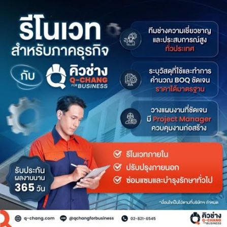 รับเหมารีโนเวทอาคารครบวงจร จบปัญหาการจัดการที่ยุ่งยาก พร้อมการันตีคุณภาพตามมาตรฐาน Q-CHANG for Business