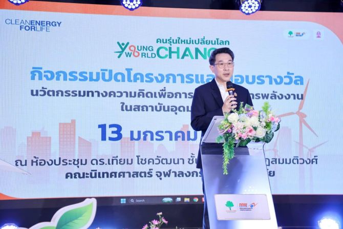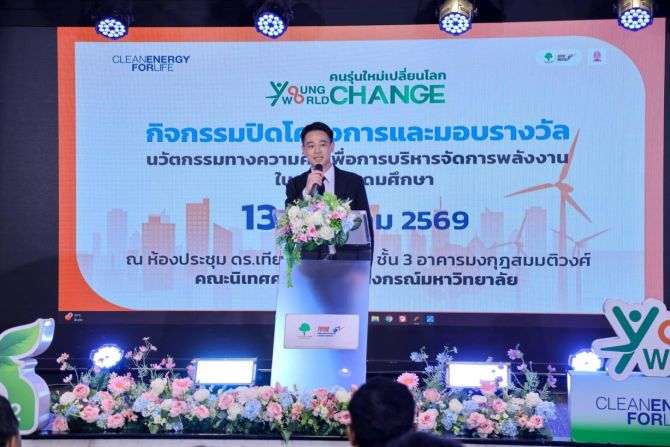 เมื่อวานนี้ (13 มกราคม 2569) นายธรณพงศ์ เล็กสกุลดิลก ผู้อำนวยการฝ่ายกองทุนพัฒนาไฟฟ้า สำนักงานคณะกรรมการกำกับกิจการพลังงาน (สำนักงาน กกพ.) กล่าวว่า “โครงการ Young Change World Change : คนรุ่นใหม่เปลี่ยนโลก เป็นโครงการที่กองทุนพัฒนาไฟฟ้า สำนักงานคณะกรรมการกำกับกิจการพลังงาน (สำนักงาน กกพ.) ได้จัดสรรเงินกองทุนพัฒนาไฟฟ้า มาตรา 97 (5) เพื่อส่งเสริมสังคมและประชาชนให้มีความรู้ ความตระหนัก และมีส่วนร่วมทางด้านไฟฟ้า ประจำปีงบประมาณ 2567 ให้กับจุฬาลงกรณ์มหาวิทยาลัย โดยศูนย์บริการวิชาการแห่งจุฬาลงกรณ์มหาวิทยาลัย ดำเนินงานกิจกรรมเฟ้นหานวัตกรรมทางความคิดเพื่อการบริหารจัดการพลังงานในสถาบันอุดมศึกษา เพื่อสร้างพื้นที่ให้นิสิตนักศึกษาระดับปริญญาตรี จากมหาวิทยาลัยทั่วประเทศ ได้นำเสนอแนวคิดนวัตกรรมด้านพลังงานสะอาดและสิ่งแวดล้อม โดยเริ่มจากแนวคิดสู่การนำไปใช้จริงในสถานศึกษาที่ตนเองศึกษาอยู่ และสามารถส่งต่อองค์ความรู้ไปยังพื้นที่อื่น ๆ ได้”