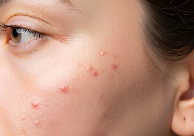 - มีสิวอุดตันเห่อจำนวนมากทั่วใบหน้า
