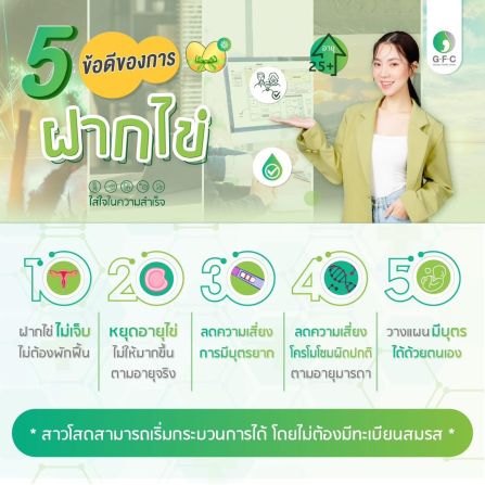 เพราะในตอนนี้สำหรับการฝากไข่นั้นตอนนี้กำลังกลายเป็นเทรนด์เตรียมความพร้อมที่เหมาะสำหรับสาวๆยุคใหม่ ในหลากหลายวงสังคม อย่างเช่น เหล่าสาวๆในวงการที่ช่วงนี้งานรัดตัวสุดๆเธอจึงเลือกที่ให้ความไว้ใจฝากไข่ที่ GFC ซึ่งมี กรีน อัษฎาพร , จันจิ จันจิรา , โม อมีนา ฯลฯ เพราะได้มีเหล่าแพทย์ผู้ชำนาญการในด้านนี้โดยเฉพาะและพร้อมให้คำปรึกษาอย่างใกล้ชิด