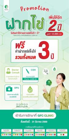 - ฝากไข่ Oocyte Freezing และฝากแช่เเข็งไข่ 1 ปี ราคา 170,000 บาท จะได้ค่าฝากแช่แข็งเพิ่ม 2 ปี มูลค่า 12,000 บาท ( **รวมเป็นฝากแช่แข็งไข่ 3 ปีฟรี ) **ระยะเวลา #Promotion ตั้งแต่วันนี้ ถึง 31 มีนาคม 2569